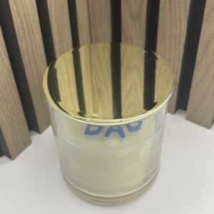 De kaars wordt geleverd met een gouden deksel en in een wit doosje.