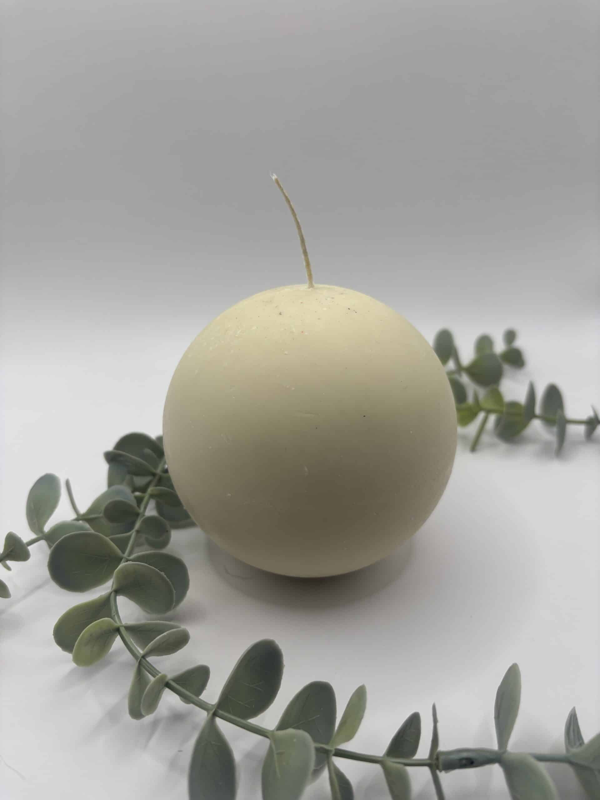 • Een witte kaars in de vorm van een kleine bol.