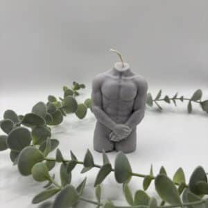 Deze kaars in de vorm van een buste van een man, is perfect om de schoonheid van het mannelijk lichaam te accentueren.