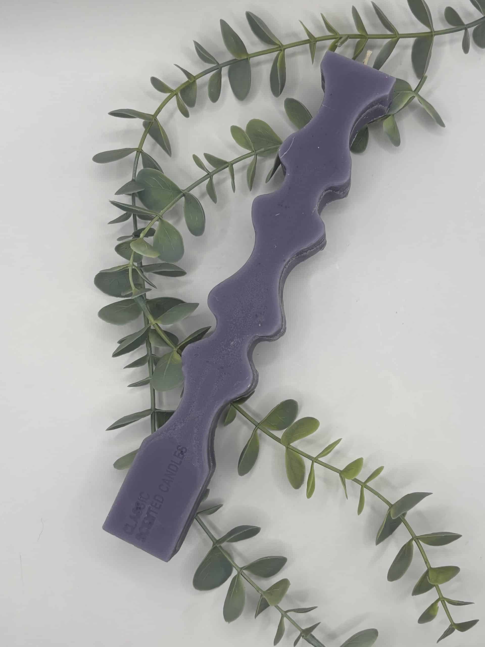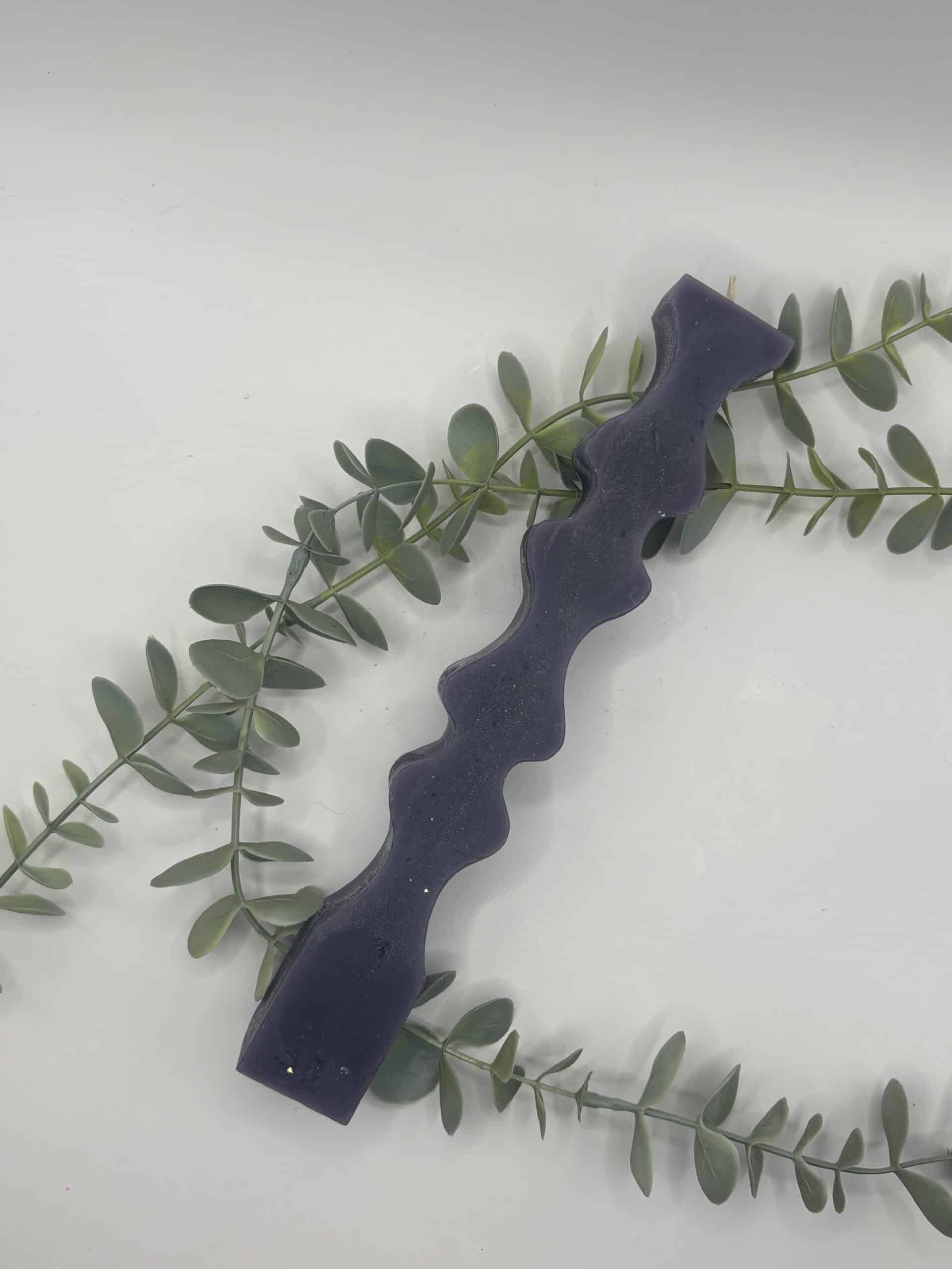 Een paarse kaars in de vorm van een pilaar met heupen.