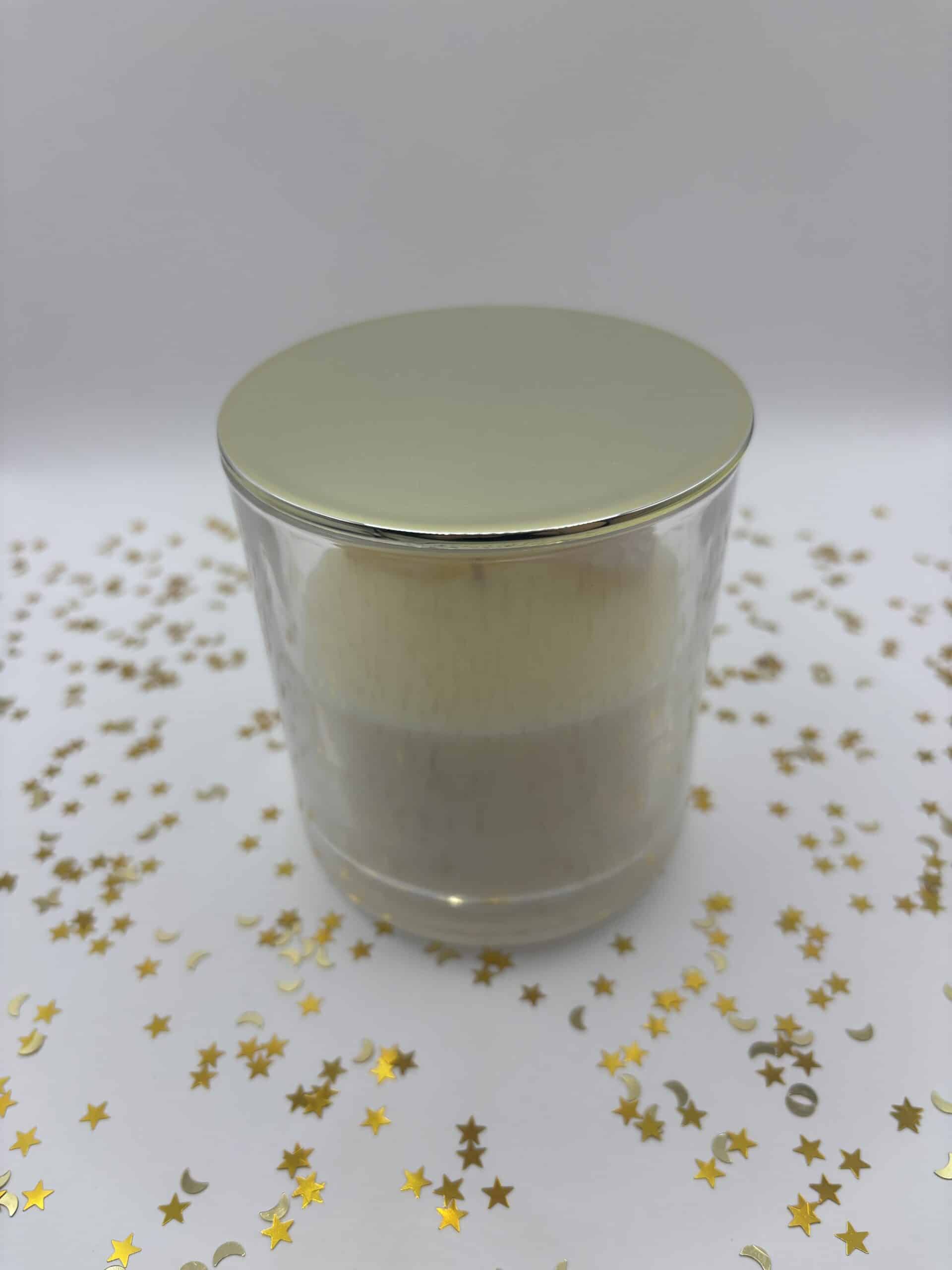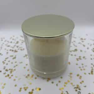 De kaars wordt geleverd met een gouden deksel en in een wit doosje.