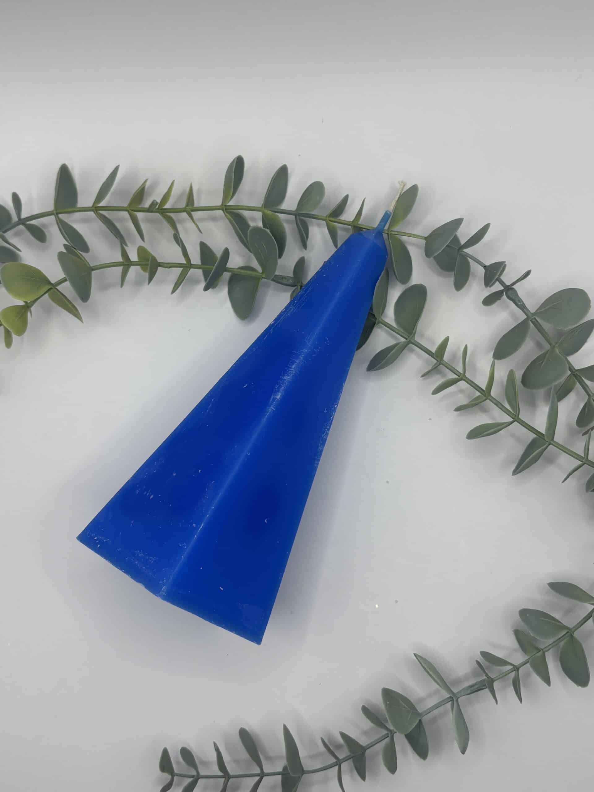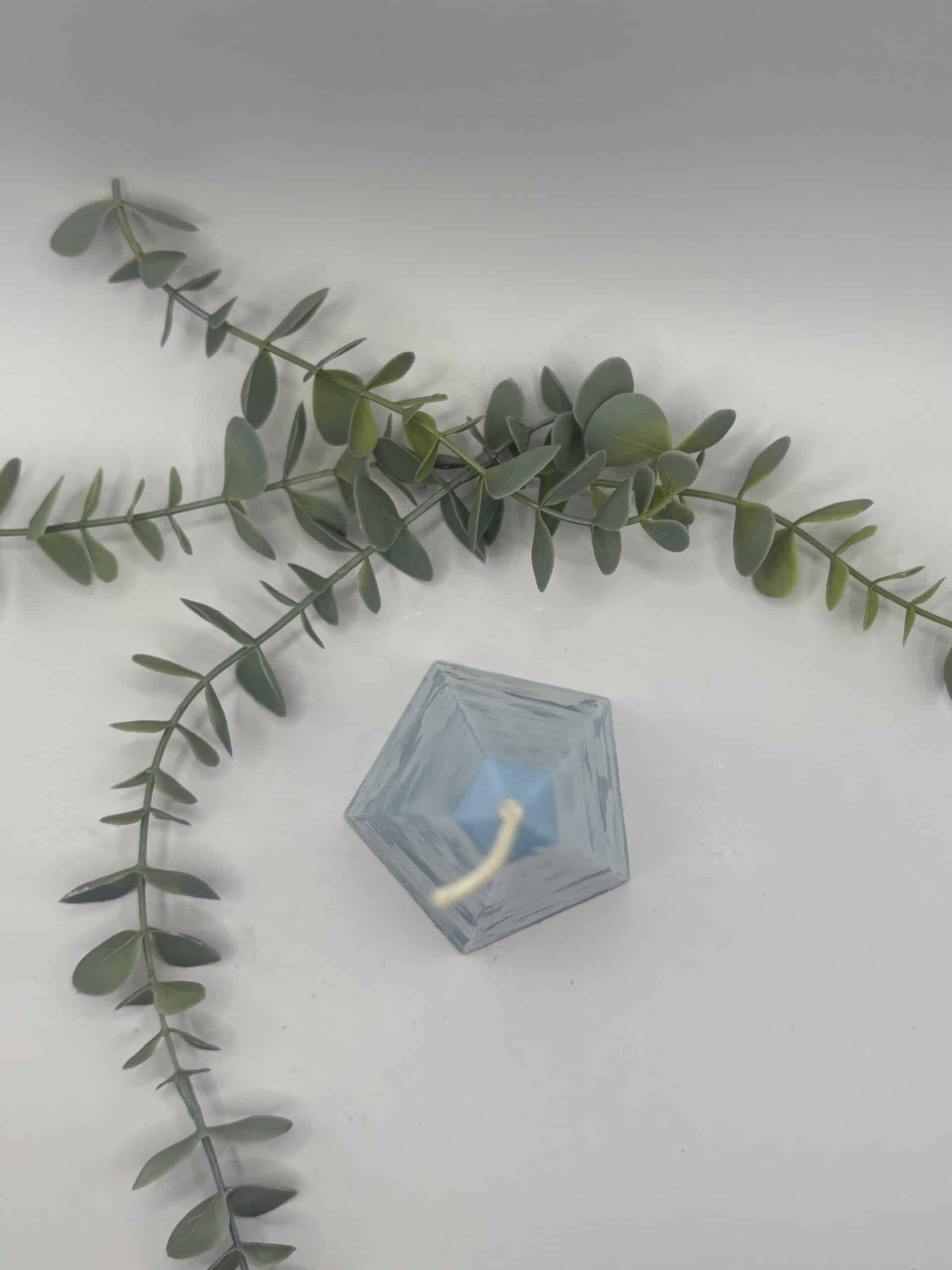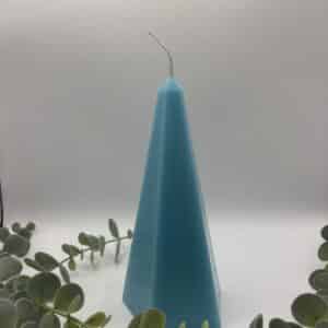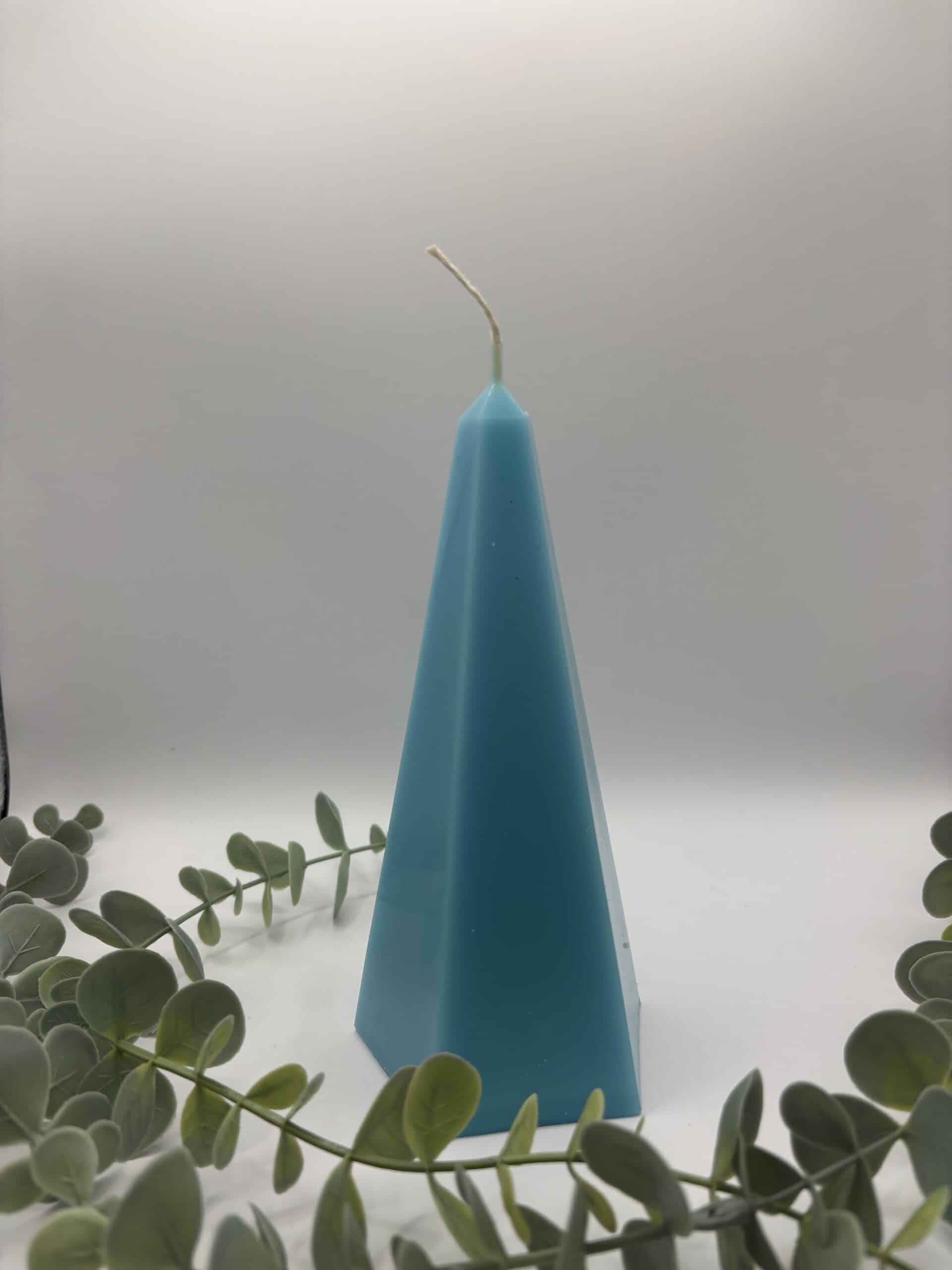 Bovenaanzicht van de grote piramide kaars met vijf zijvlakken.