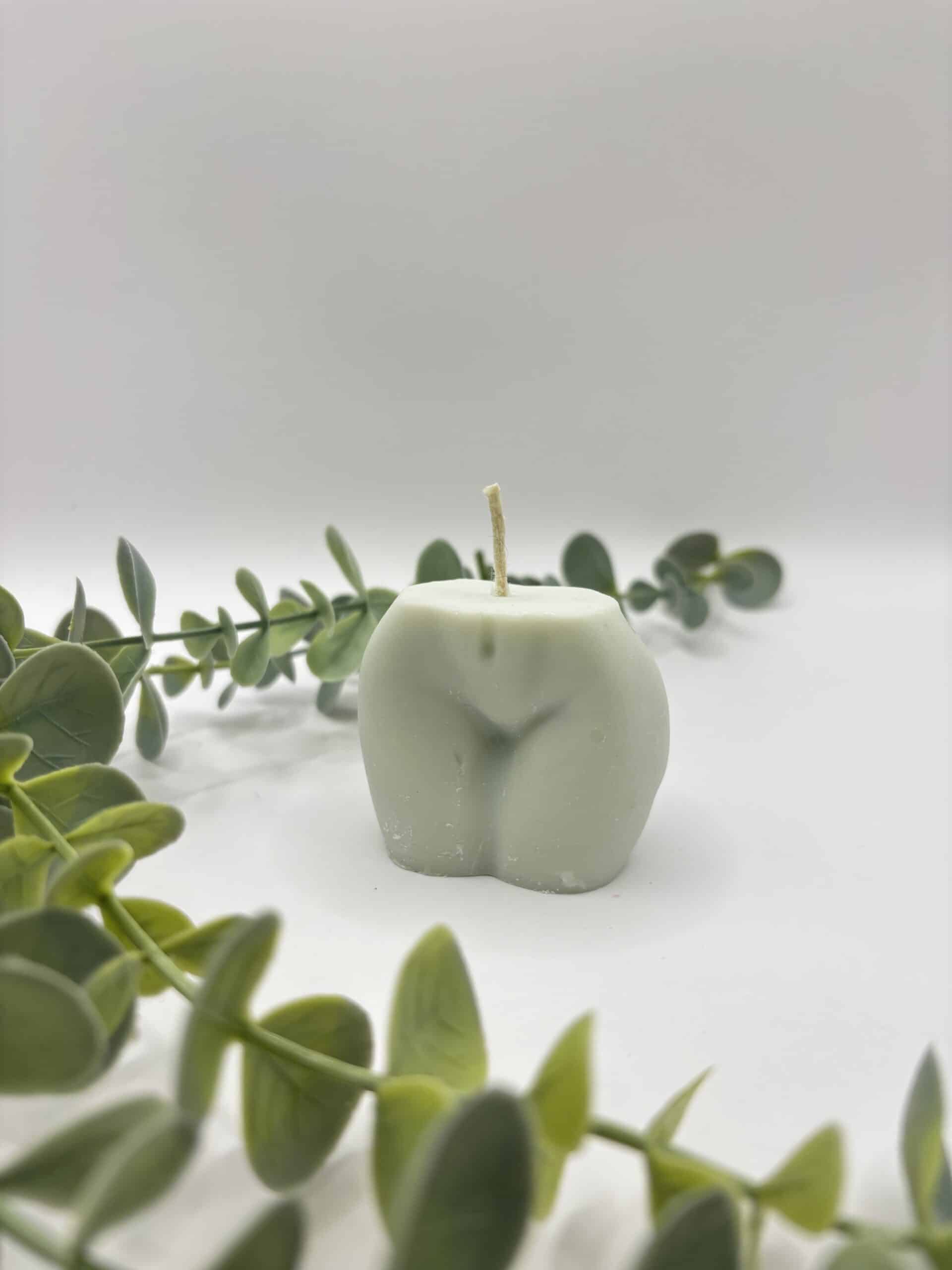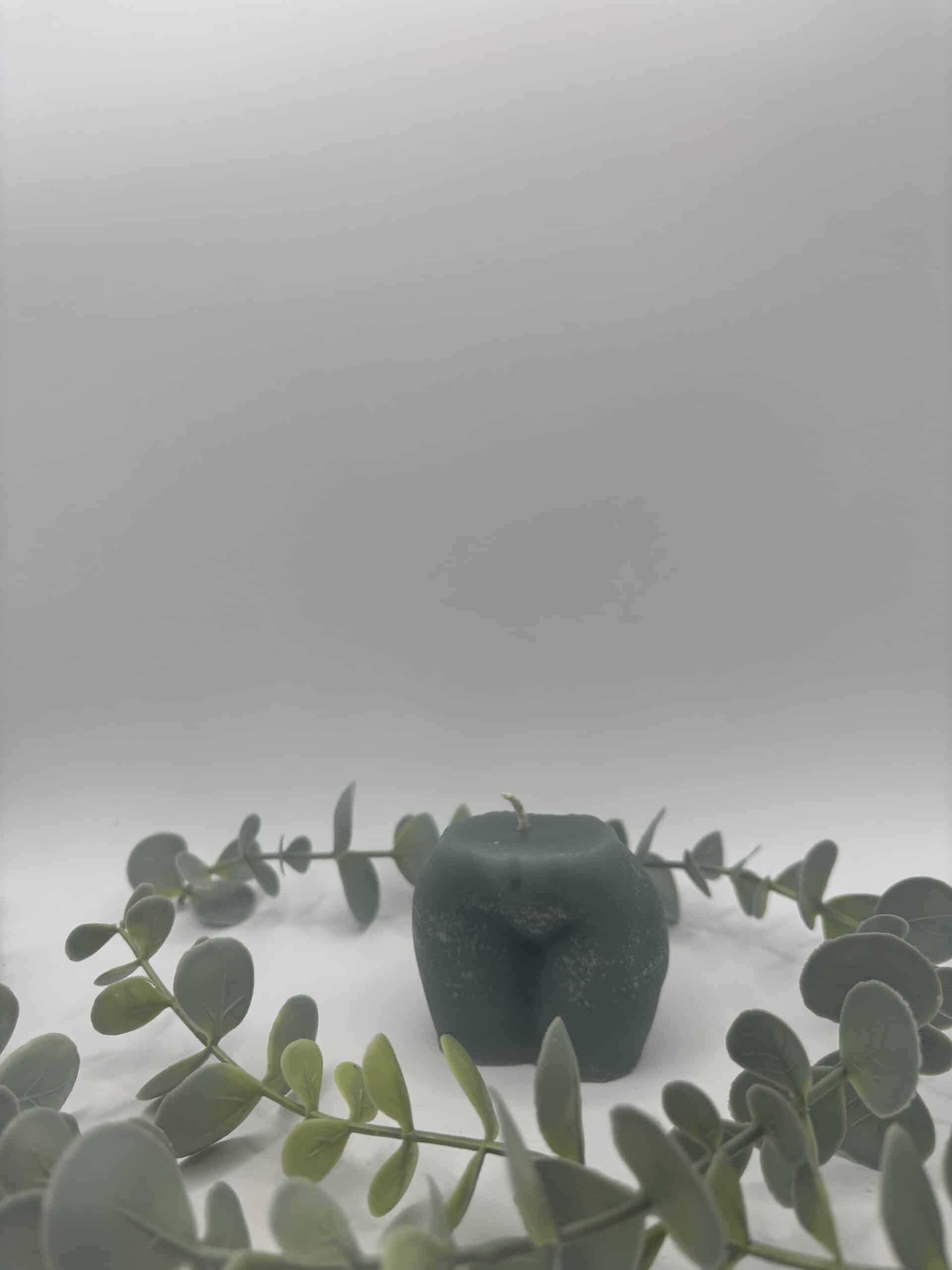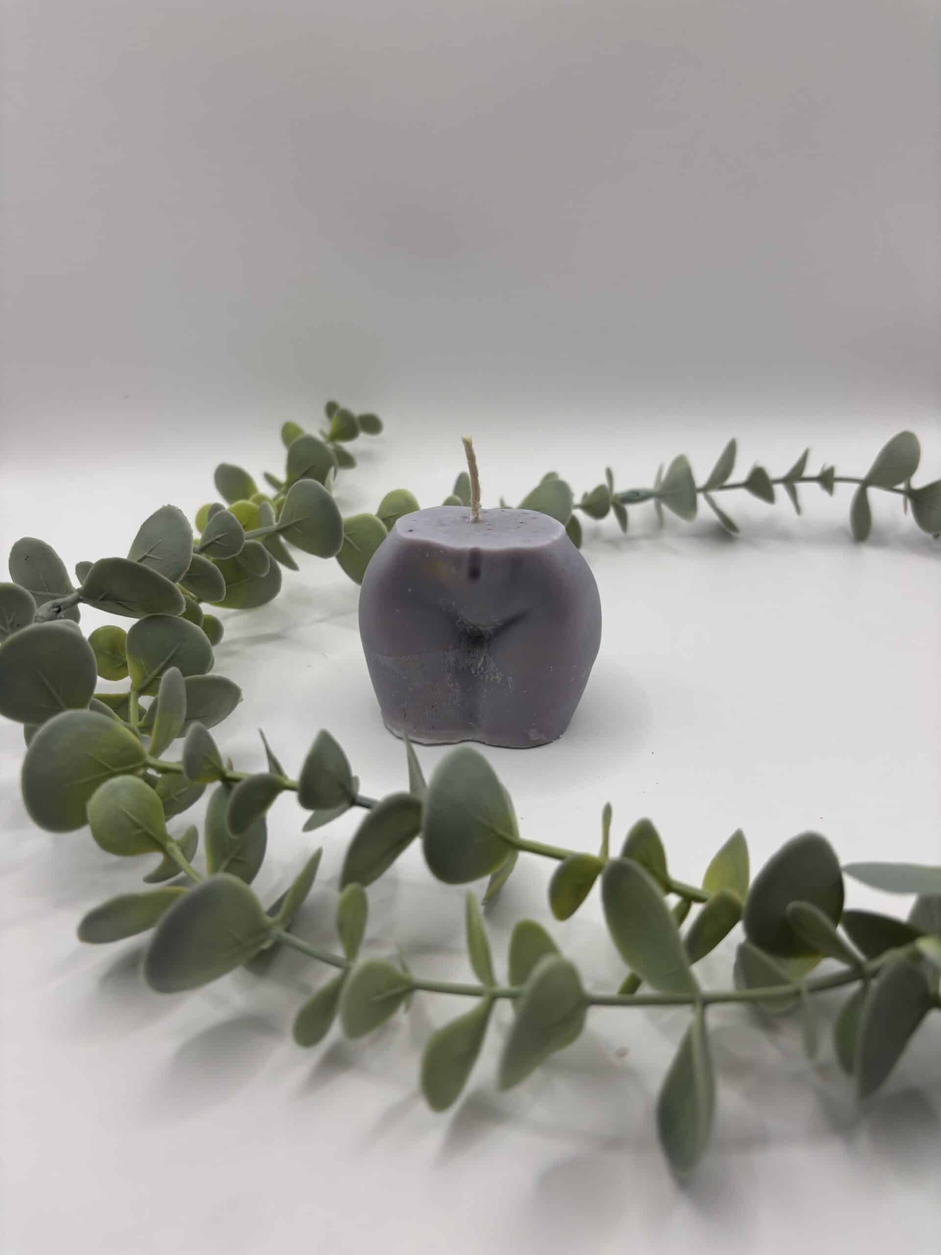 • Een blauwe kaars in de vorm van een portret van een dame.