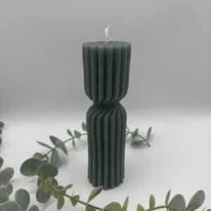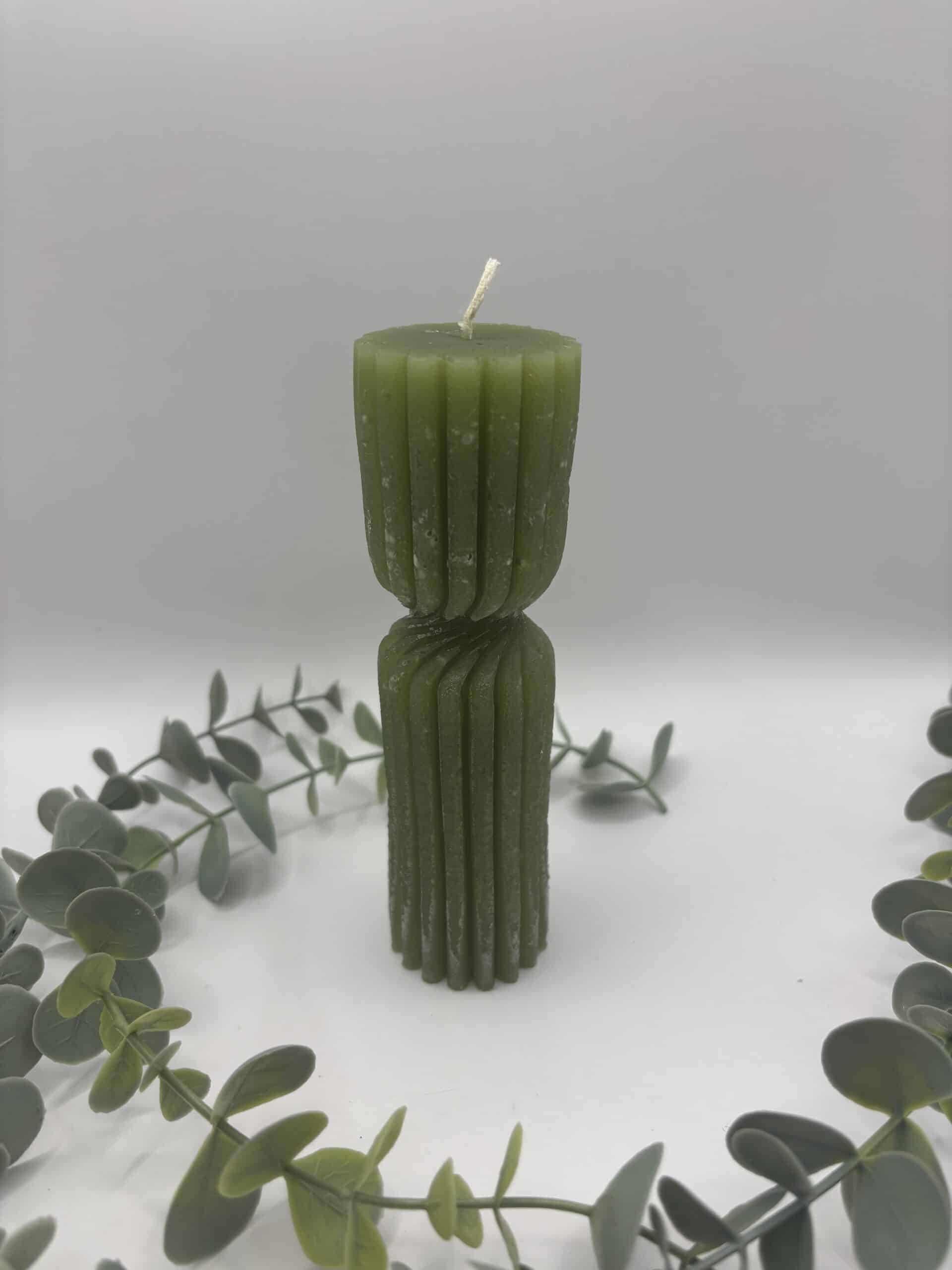 • Een kaki kaars in de vorm van een golf.