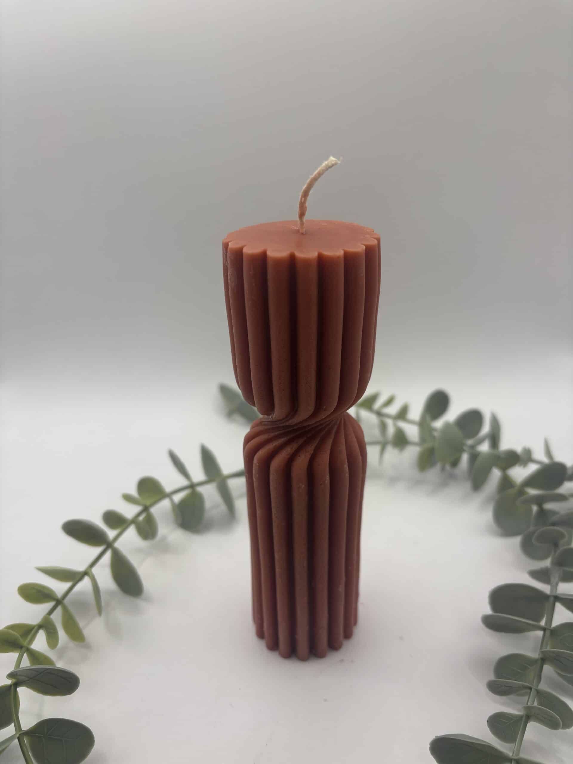 Deze swirl pilaar medium is eens iets anders dan gewoon een cilindervormige kaars.