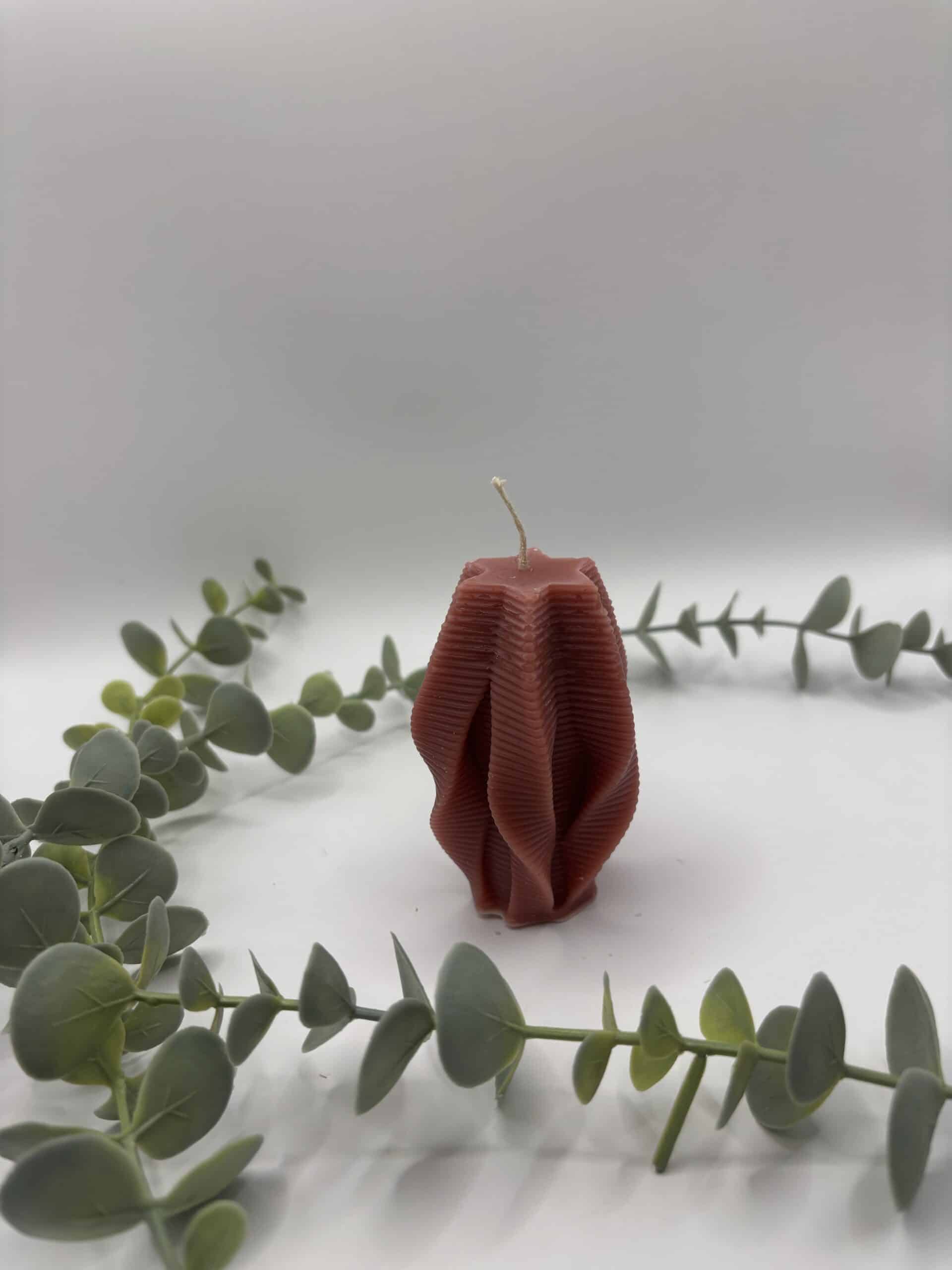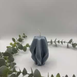 • Een blush kaars in de vorm van een kleine pilaar met groeven.