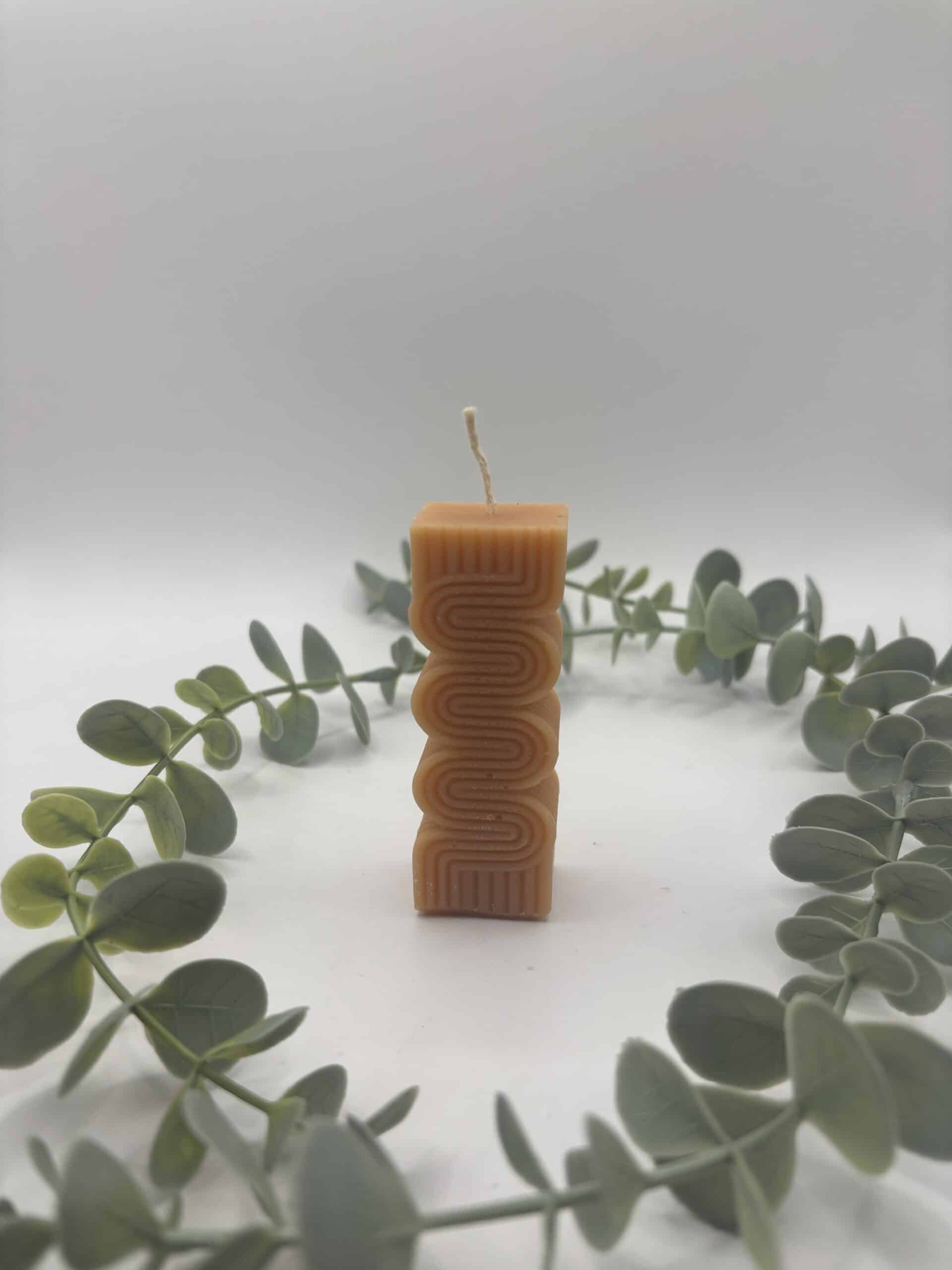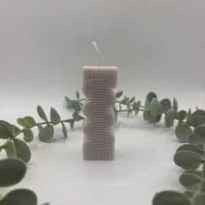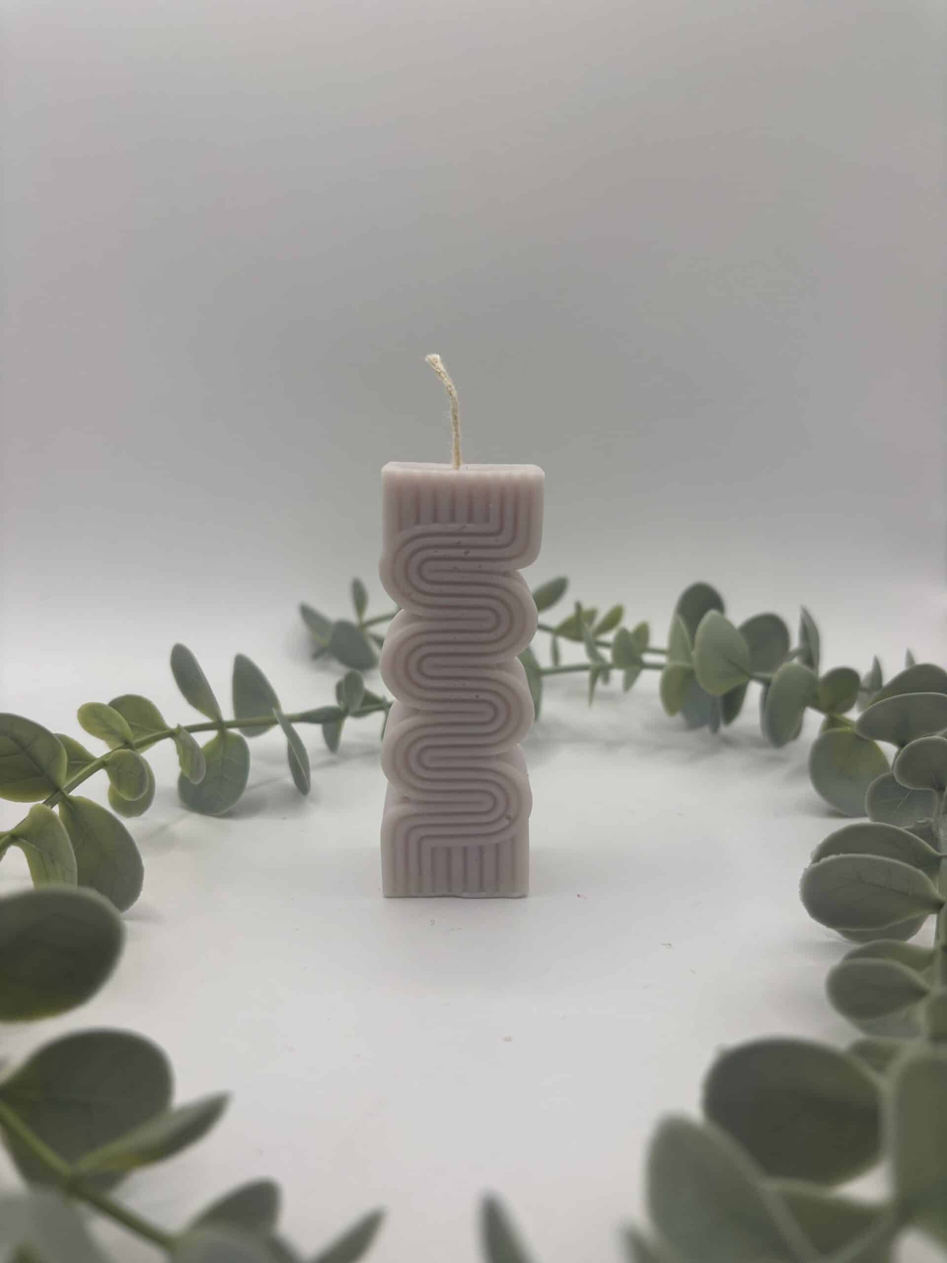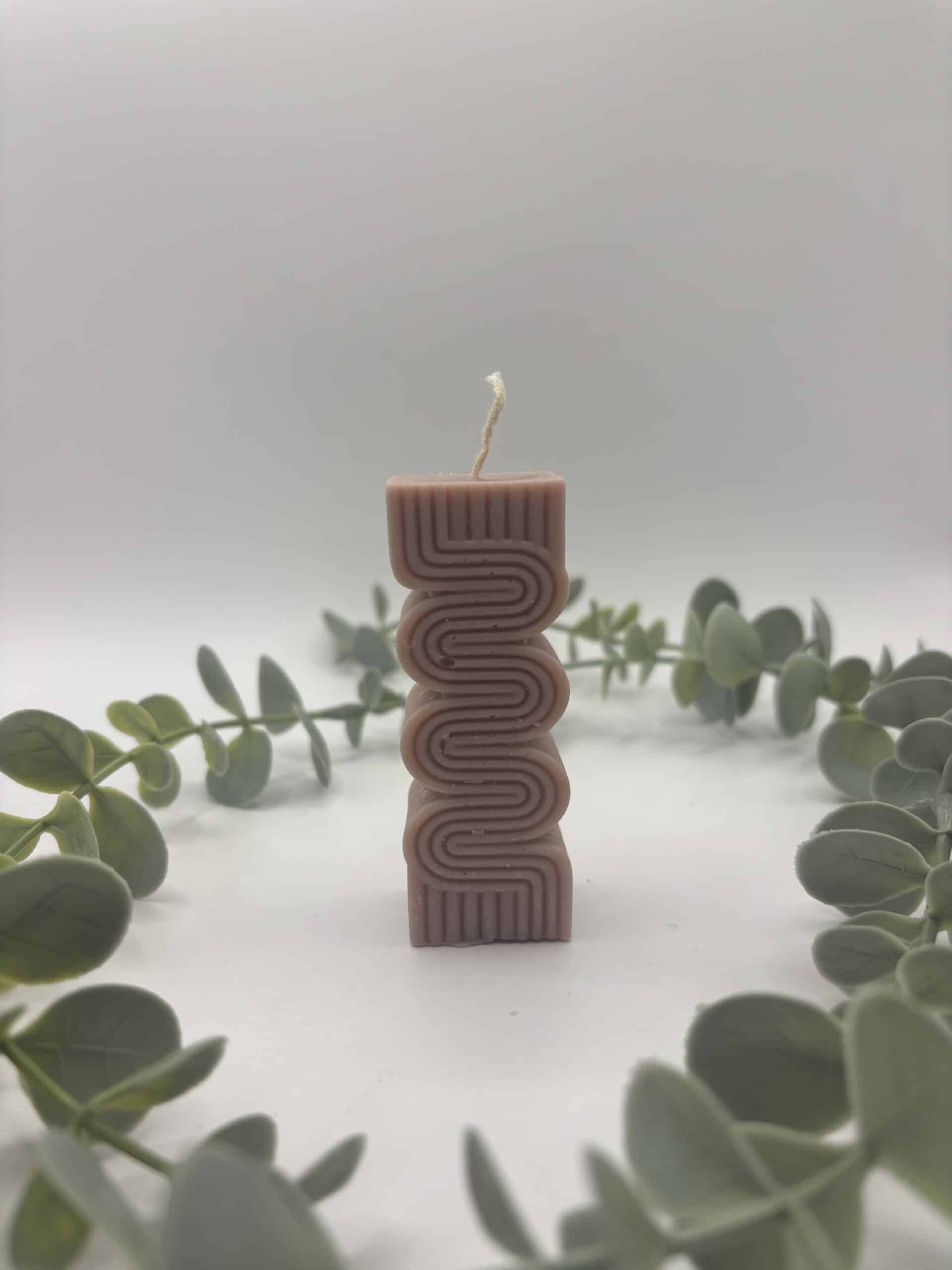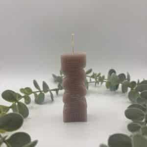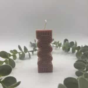 • Een blush kaars in de vorm van een kleine pilaar met groeven.